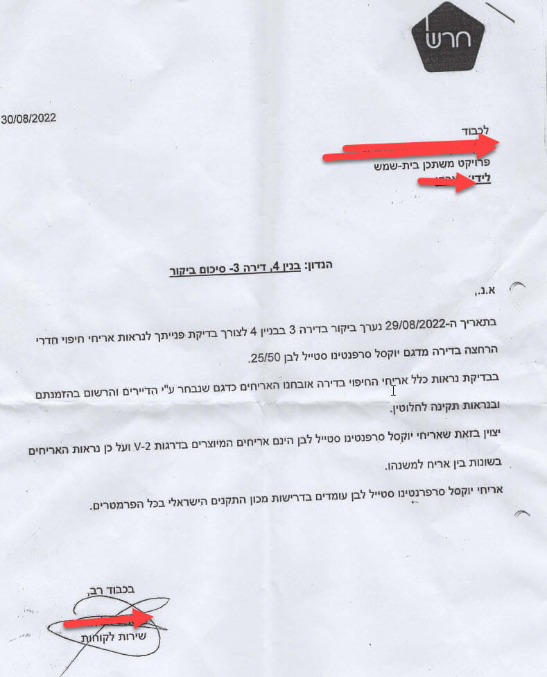 דוגמא למקרה שקרה לי בעת ביקורי ועדיין תנהל מול הספק והקבלן שמבחינתם זה V2